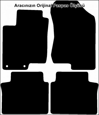 Ürün resimlerindeki siyah beyaz paspas şablonu aracınızın paspas ölçüsüdür