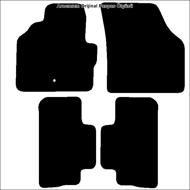 Ürün resimlerindeki siyah beyaz paspas şablonu aracınızın paspas ölçüsüdür